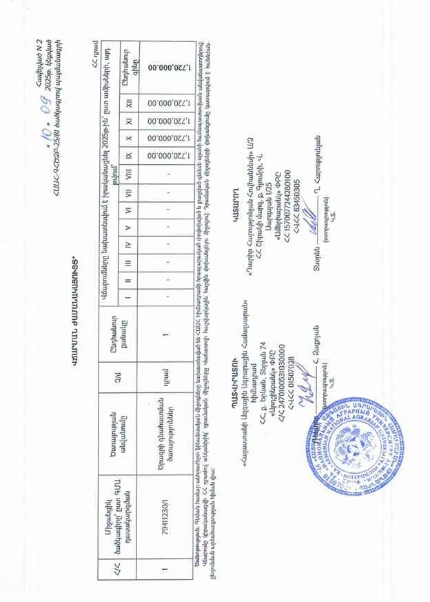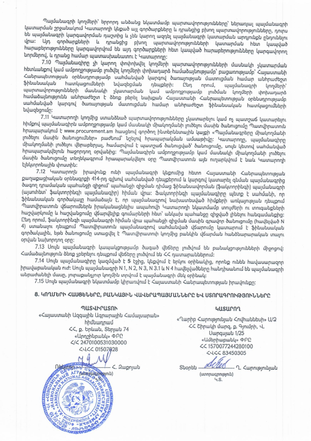 Yerkir.am-ի տեղեկություններով, մասնավորապես, ԱՁ Ղարիբ Հովհաննեսի Հարությունյանը 2024 և 2025 թվականներին երկու խոշոր՝ 950 000 և 1 720 000 պայմանագրեր է կնքել Հայաստանի ազգային ագրարային համալսարանի ռեկտոր Հ. Զաքոյանի հետ: