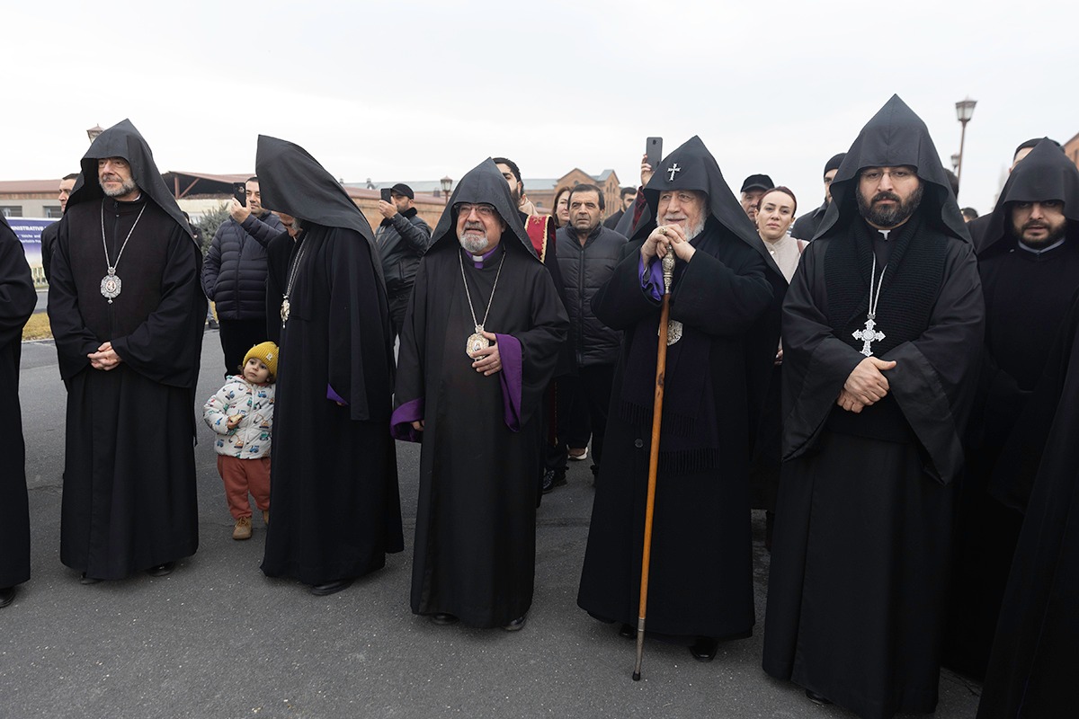 Արարողության ավարտին եկեղեցականաց թափորն ուղղվեց դեպի Մայր Աթոռի միաբանական շենքի շրջափակ, ուր ներկայությամբ բազում հավատավոր հայորդիների, Ամենայն Հայոց Հովվապետի ձեռամբ վառվեց Տեառնընդառաջի խարույկը: Վեհափառ Հայրապետը նաև հավատավոր հայորդիներին ընծայեց խաչեր: