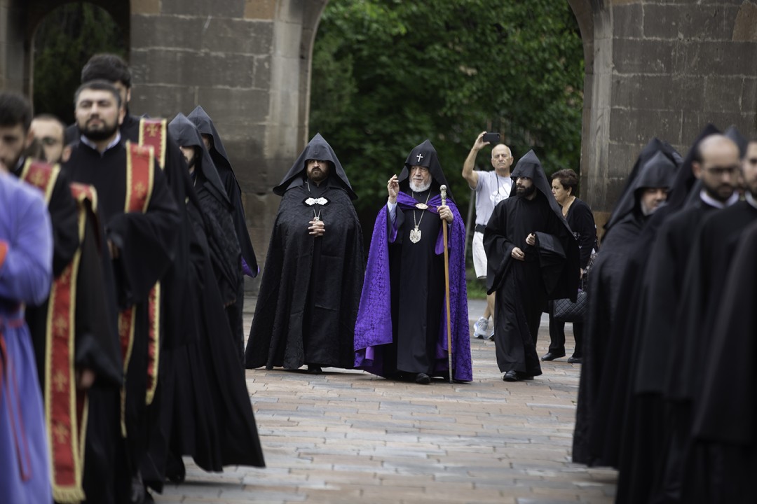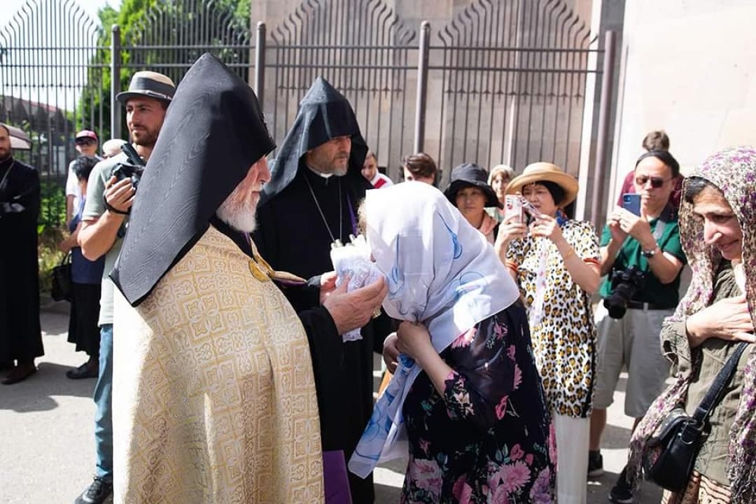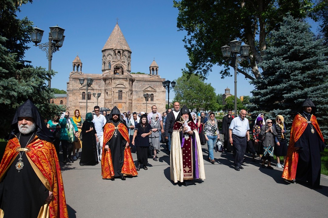 Ռուսաստանի և Նոր նախիջևանի հայոց թեմի առաջնորդ Եզրաս Սրբազանը հայորդյաց տան սաների հետ, ովքեր ավագ երեքշաբթիի օրվա խորհուրդով մոմերը ձեռքերին հիշեցնում են ավետարանական 10 կույսերի առակը։