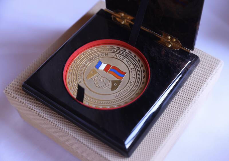 Ի նշան հայ-ֆրանսիական դարավոր բարեկամության, ի նշան Հայաստանի կողքին մշտապես լինելու Ֆրանսիայի պատրաստակամության՝ «Պրեստիժ Մեդիա» ընկերության կողմից Ֆրանսիայի նախագահ Էմանուել Մակրոնի անունով «Երախտագիտություն» անվանական ոսկե մեդալը նրան կփոխանցի միջոցառման հատուկ հյուր, Ֆրանսիայի սենատում Ֆրանսիա Հայաստան բարեկամության խմբի նախագահ, սենատոր Ժիլբերտ-Լյուկ Դըվինազը։