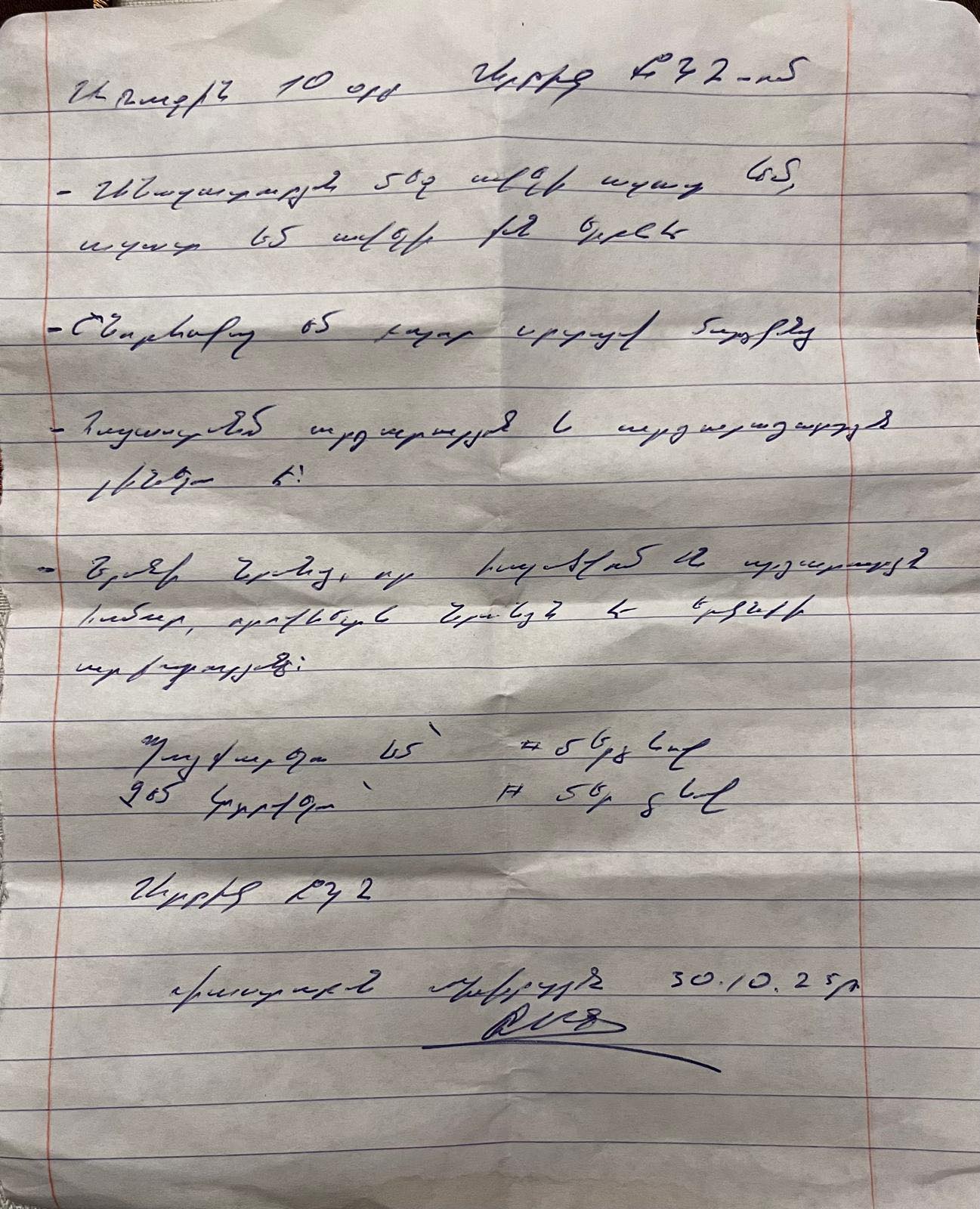 Պայքարելու եմ, չեմ կոտրվելու»,-մասնավորապես նշված է նամակում։