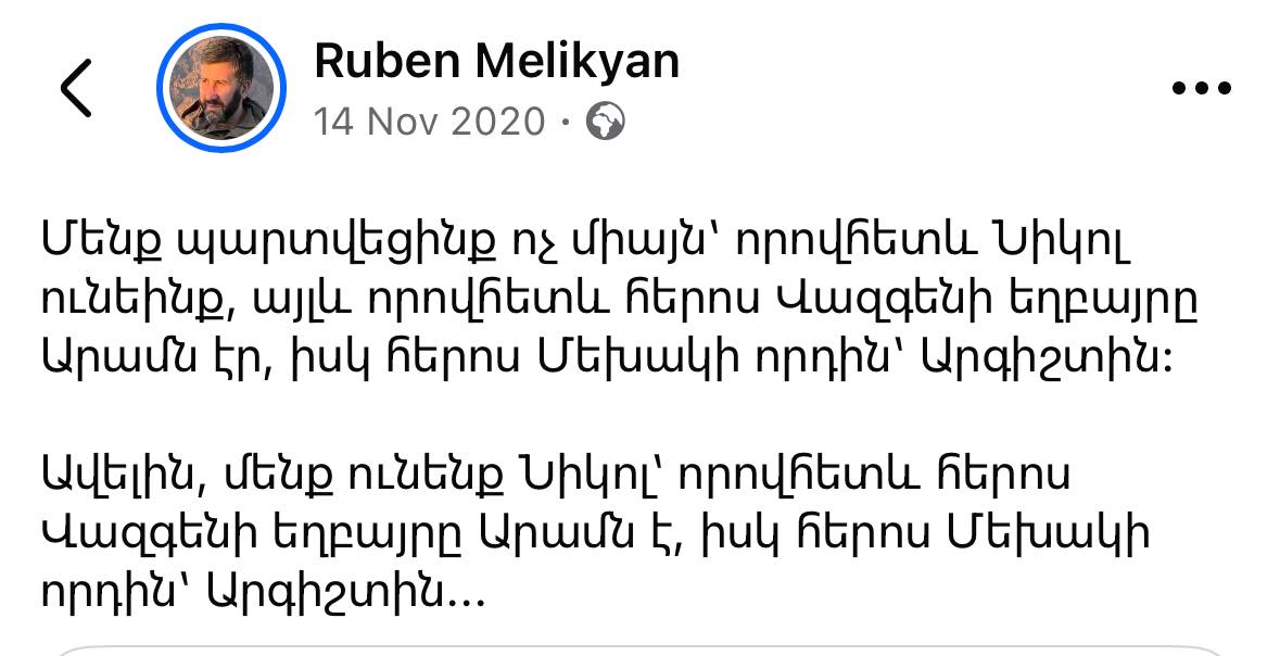 Իրավապաշտպան Ռուբեն Մելիքյանը գրում է.