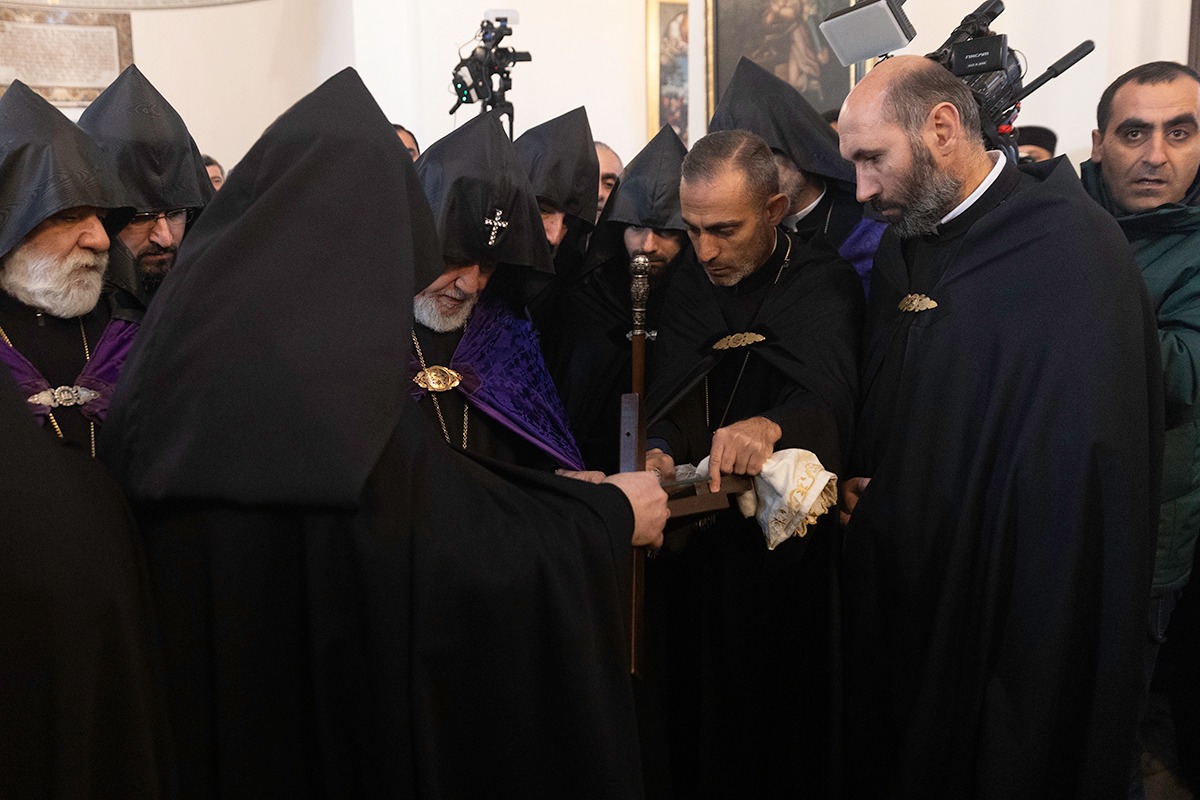 Սուրբ Պատարագի ավարտին Հայոց Հովվապետը «Պահպանիչ» աղոթքով և հրաշագործ Սուրբ Գեղարդով օրհնեց ներկա ժողովրդին, ապա հավատացյալներին հնարավորություն ընձեռվեց երկրպագելու ու համբուրելու համաքրիստոնեական սրբությունը: