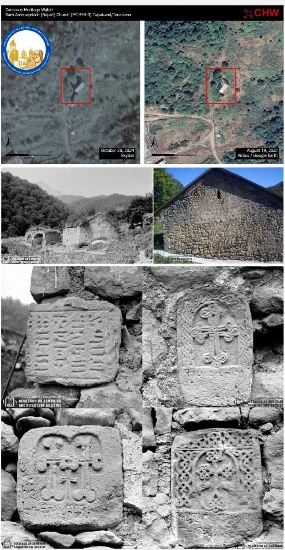 «17-րդ դարի Սուրբ Ամենափրկիչ Վանքը, որը գտնվում է Տոնաշեն բնակավայրի մոտ՝ այժմ բռնազավթված Ադրբեջանի կողմից, ենթարկվել է վնասման։ 2024-2025 թթ. հեռացվել է վանքի մետաղյա ծածկի մեծ մասը, որը տեղադրվել էր 2009 թ․ վերականգնման ընթացքում՝ Արցախի Հանրապետության իշխանությունների կողմից։