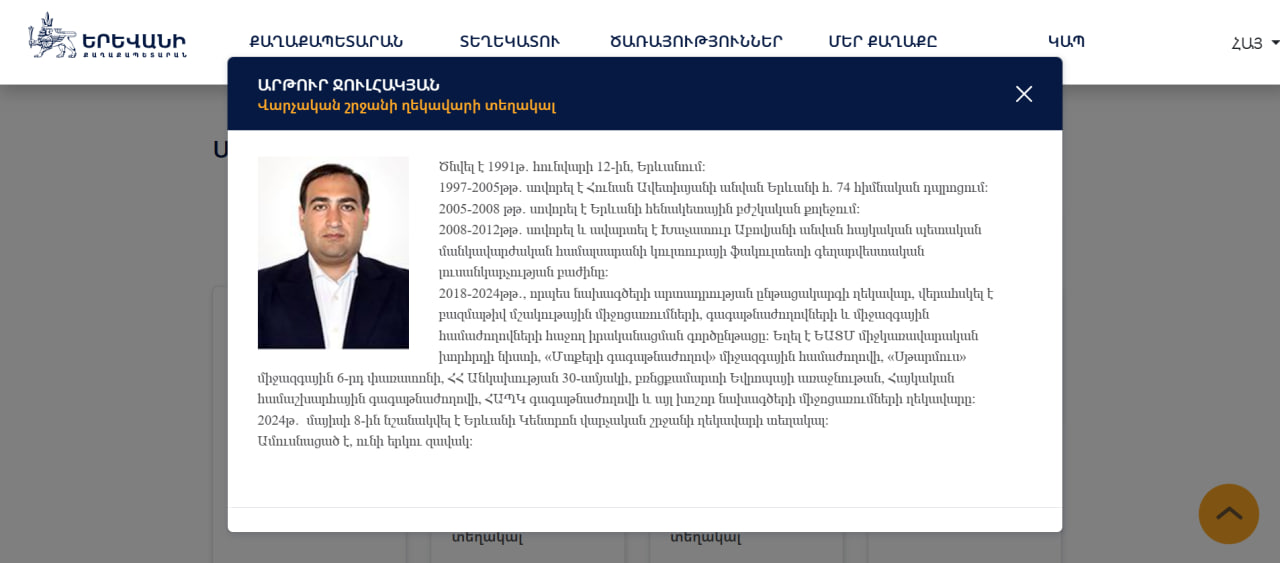 Հետաքրքիրն այն է, որ Արթուր Ջուլհակյանը իր կենսագրականում, որը հրապարակված է Երևանի քաղաքապետարանի պաշտոնական կայքում, մեկ տող անգամ չի հիշատակել «Ֆակտորի Փրոդաքշն» ՍՊԸ-ում իր աշխատանքի մասին։ Սակայն նշել է, որ մի շարք միջոցառումներ է ղեկավարել 2018-2024 թվականներին։ Մինչ այդ Ջուլհակյանը 2012 թվականից մինչև 2018 թվականը, համաձայն կենսագրության, սովորելուց հետո ոչնչով չի զբաղվել։
