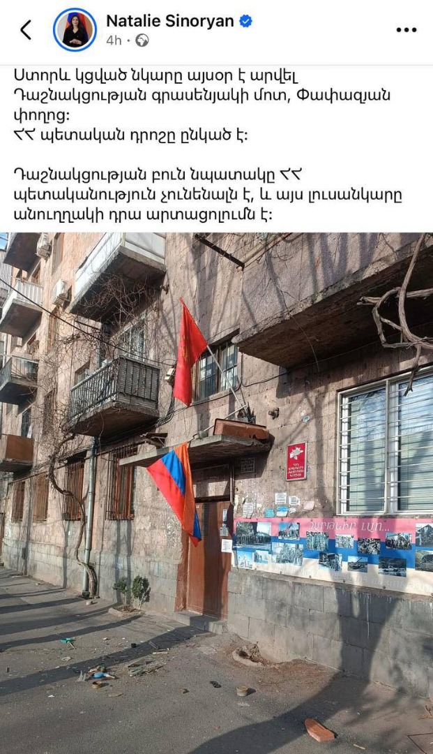 ՀՅԴ Երևանի քաղաքային կոմիտեի ներկայացուցիչ Գոռ Սարգսյանն արձագանքել է ՔՊ-ականի շահարկումներին և բացատրել, թե ինչ հանգամանքներում է վնասվել ՀՅԴ Կոմիտաս կոմիտեության դրոշը.