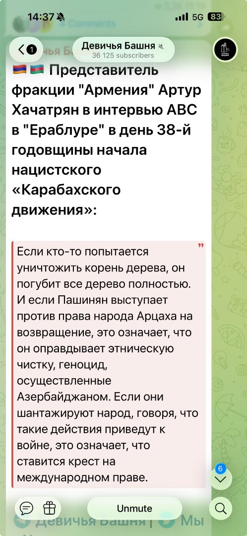 Քանի որ դրանք խոսքս լրիվ չեն տվել՝ հստակեցնեմ, որ «ծառը» Հայաստանի երրորդ Հանրապետությունն է, իսկ արմատը՝ սկիզբն ու սնուցող ջիղը՝ Արցախյան շարժումը»։