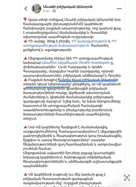 «Ժողովուրդ» օրաթերթը գրում է. «Սևանի բժշկական կենտրոնի կասեցված լիազորություններով տնօրեն Արամ Նիկողոսյանը Առողջապահության նախարար Անահիտ Ավանեսյանի և իր ընկեր՝ Գեղարքունիքի մարզպետ Կարեն Սարգսյանի հետ փետրվարի 16-ին մասնակցել է հիվանդանոցի ԿՏ-ի կաբինետի բացման արարողությանը, այն դեպքում, երբ Նիկողոսյանի լիազորությունները փետրվարի 6-ի դրությամբ արդեն հենց նույն նախարարի հրամանով դադարեցված են՝ ՀՀ Հակակոռուպցիոն կոմիտեի պահանջով։