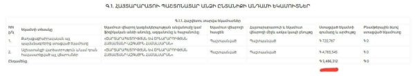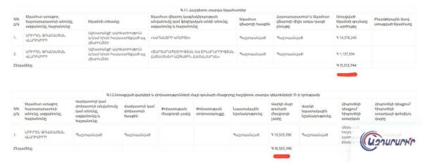 • Աշխատավարձ («Կադաստրի կոմիտե»)՝ 14,376,240 դրամ
