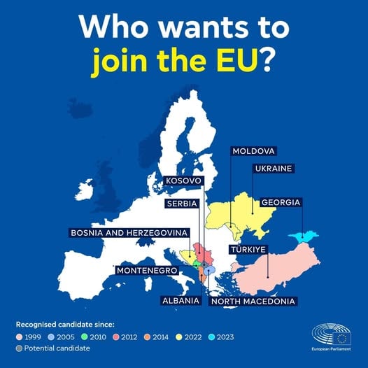 Քաղաքագետ Արա Պողոսյանը գրում է. «European Parliament-ը հրապարակել է քարտեզ, որտեղ նշված են ԵՄ անդամակցության հաջորդ թեկնածուները։ Հրապարակված քարտեզին կից գրված էր. «ԵՄ ընդլայնումը ներդրում է իր անվտանգության և կայունության մեջ։