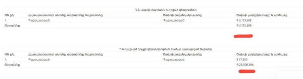Հայտարարագրում նշված է նաև, որ անշարժ գույքի վերանորոգման համար ծախսել է 57,800 ԱՄՆ դոլար և 22,500,384 դրամ։